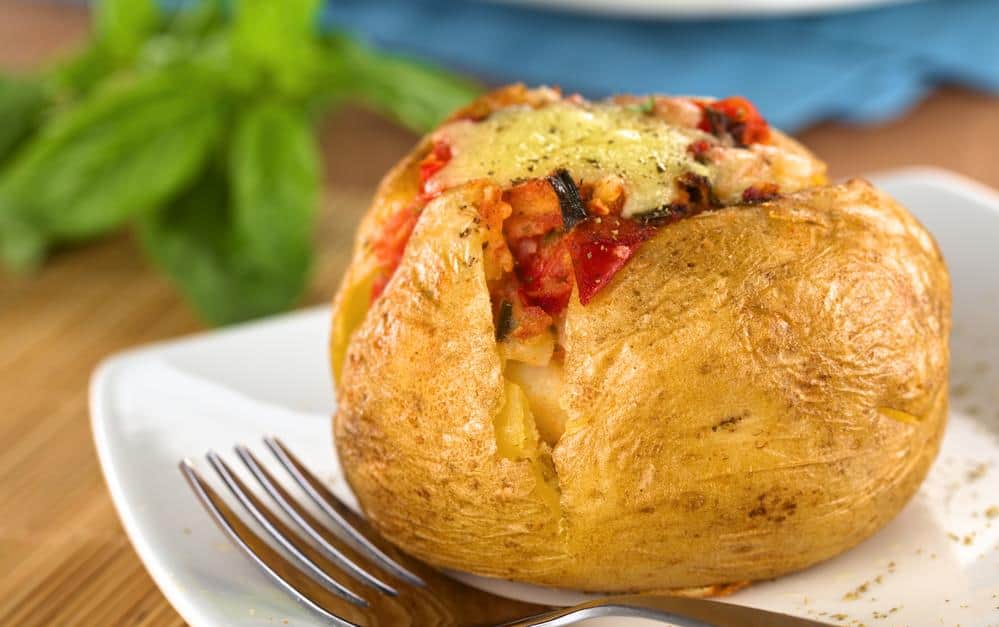 * Patatesin içini oyun ve içine yağ ile pişirdiğiniz domatesi koyun.